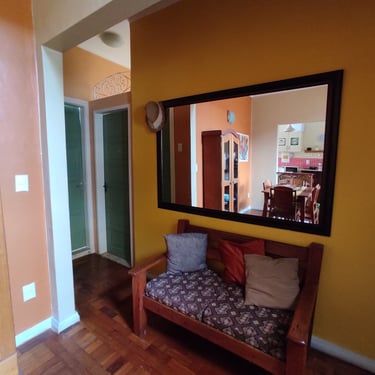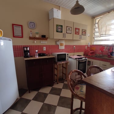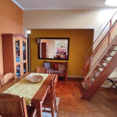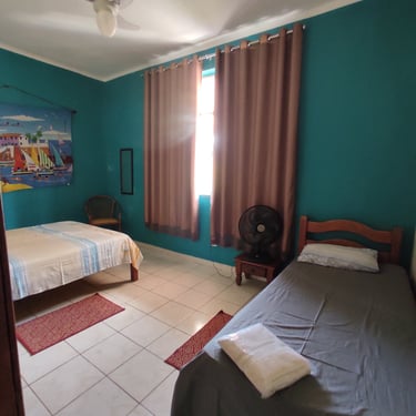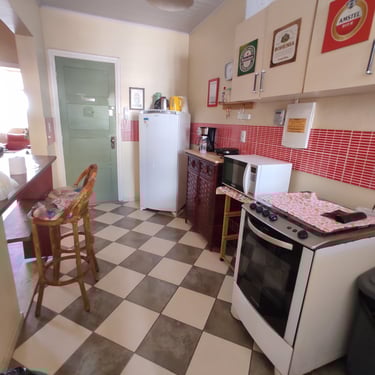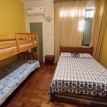 Mobiliado e equipado com: ar-condicionado em 1 quarto (alcance para um segundo quarto), 3 camas de casal, 2 camas de solteiro, 1 beliche, sofás de sala, TV, fogão, geladeira, mesa de jantar, liquidificador, utensílios de cozinha (panelas, pratos, talheres, copos, vasilhas) e máquina de lavar.