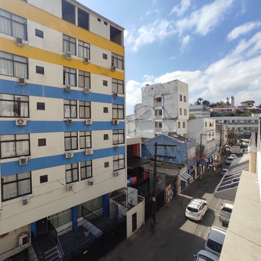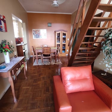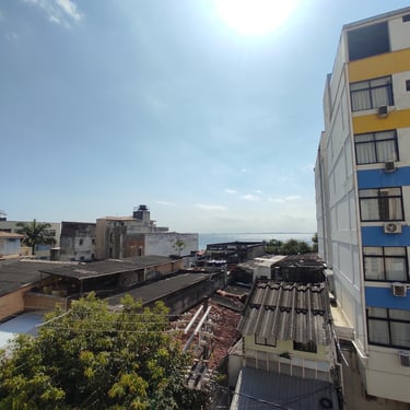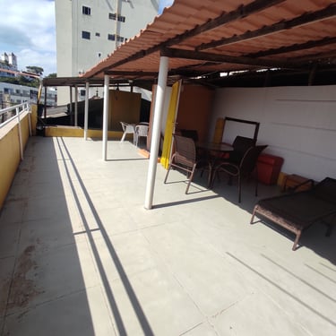 Cobertura duplex de 4 quartos (2 suítes), 3 banheiros, área de serviço com máquina de lavar e terraço com vista mar.