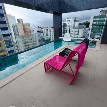 Portaria 24 horas, guarda-volumes, 2 elevadores, rooftop com piscina e espaço gourmet, academia, coworking, salão de jogos, lavanderia (paga), garagem com vagas rotativas, minimercado e bicicletário.
